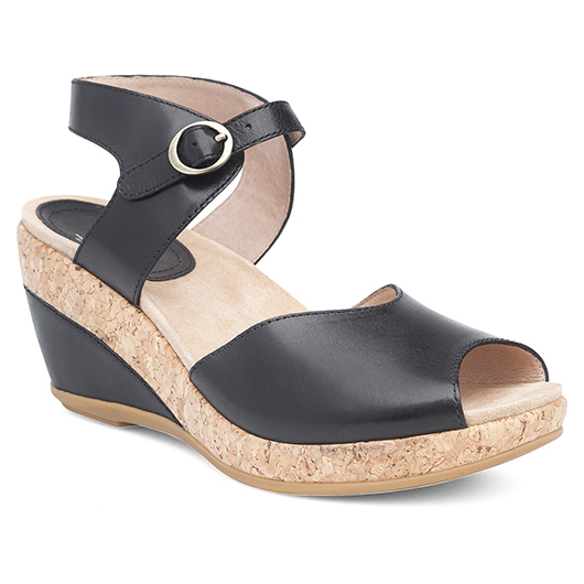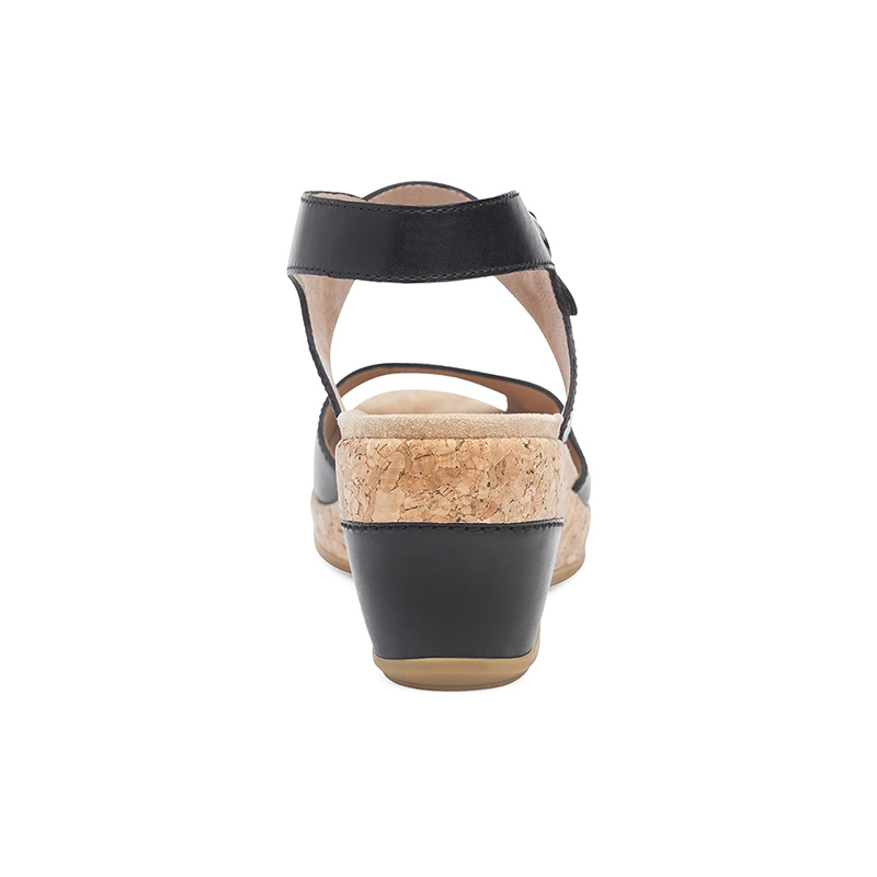 - レザーとコルクの PU ウェッジはヒールの安定性とつま先部分の柔軟性を提供